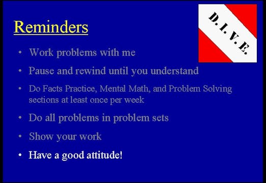 Up Next in DIVE Lectures for Saxon Math 7/6, 3rd Edition